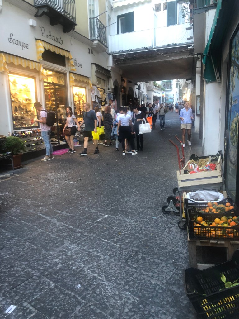 On our recent trip to Italy we spent 3 nights in the town of Amalfi, a delightful Oceanside town of about 5000 folks. There seems to be only one street in Amalfi, a narrow one that runs up the middle of town with all manner of people and vehicles on it. Traversing it by car as we did is an interesting experience.