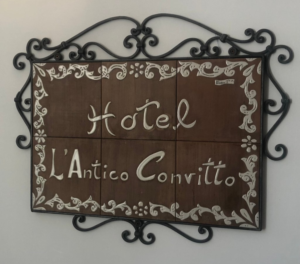 We found a charming hotel located just off that street and just up this alley. At the end of the alley was a small food market and the entrance to our hotel, The L’ANTICO CONVITTO.