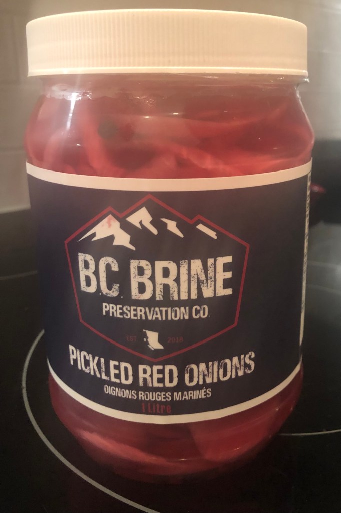 Then, by chance, the other day I saw them in the local THRIFTY’S. Pickled red onions produced right here in BC. In Falkland BC, located between Vernon and Kamloops. Yes a young couple in Falkland make and market this wonderful product.